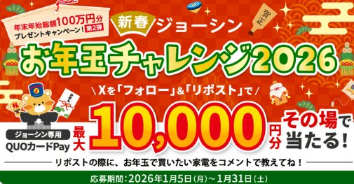 ジョーシン専用QUOカードPay最大1万円分がその場で当たるキャンペーン