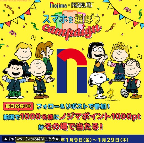 ノジマポイント1,000ptがその場で1,000名様に当たるXキ···