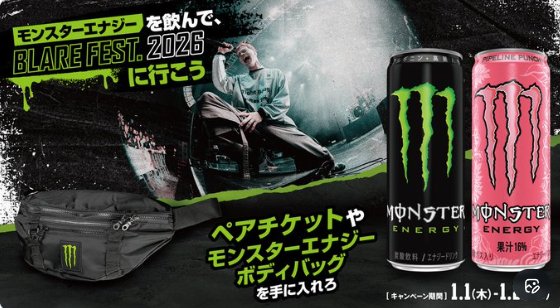 【アピタ・ピアゴ×モンスター】BLARE FEST. 2026チケットやボディバッグなどが当たるキャンペーン