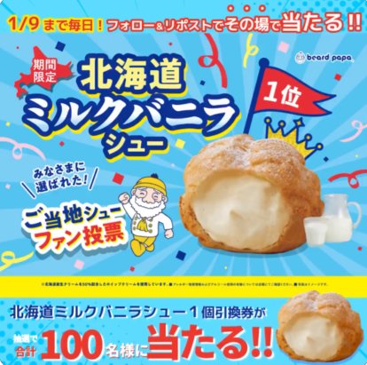 北海道ミルクバニラシューの無料引換券がその場で当たるキャンペーン