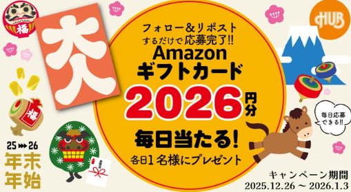 毎日1名様にAmazonギフトカード2,026円分が当たるXキャンペーン