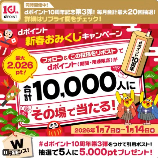 10,000名様にdポイントがその場で当たる大量当選X懸賞