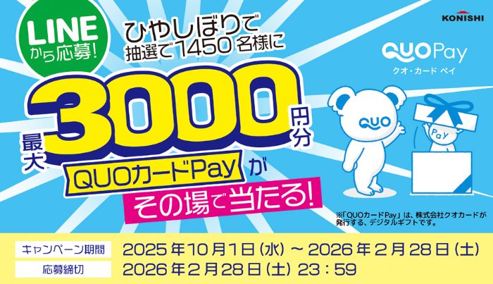 最大3,000円分のQUOカードPayがその場で当たるクローズドキャンペーン