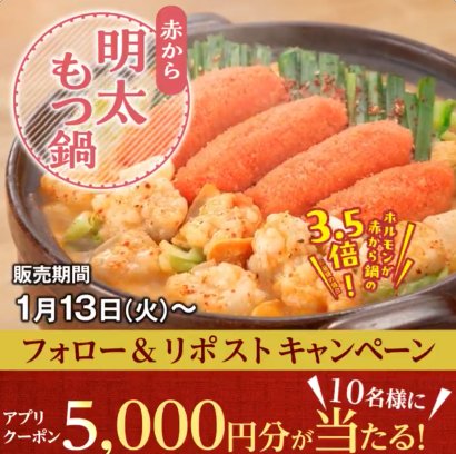 5,000円分の赤からアプリクーポンがその場で当たるXキャンペーン